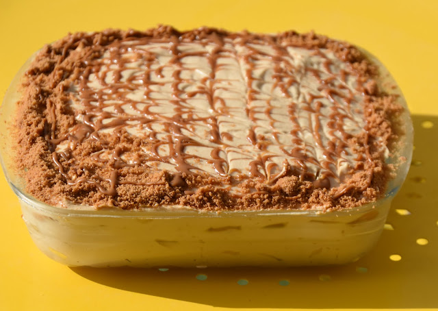 Verser la moitié de la crème, une couche de biscuits spéculoos mixé, déposer un second étage de biscuits cuillère imbibée de lait. Enfin, verser le reste de la crème et décorer comme vous le souhaitez.